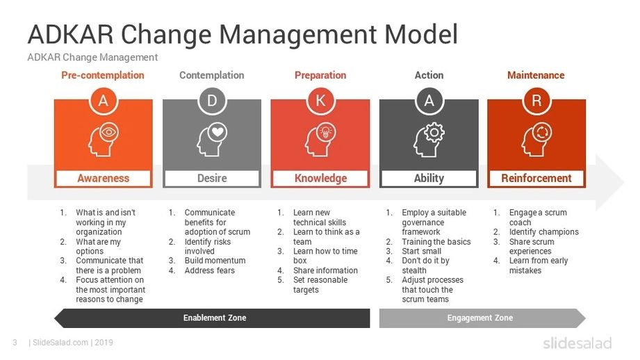 Tags: ADKAR PowerPoint, ADKAR slide template, change management steps, change process visual, Google Slides change model